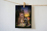 Mouse Puck visits the big three of Europe (wolf, bison, bear) to sit and chat by the campfire. An enchanting illustration that can be sent as a card, as a gift or to decorate the wall. Always nice to give away a cozy illustration or to hang in the house!
