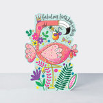 A lovely Space birthday card printed with vibrant neon inks on textured board. It is finished with luxurious gold foil and a raised hand applied number. Supplied with a neon teal envelope.